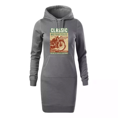 Dámské mikinové šaty MALFINI Snap 419 jsou ideální volbou pro ženy, které hledají pohodlný a stylový kousek pro volný čas nebo každodenní nošení. Lehce vypasovaný střih s bočními švy podtrhuje ženskou siluetu, zatímco kapuce s podšívkou a stahovací šňůrkou dodává ležérní vzhled. Šaty mají délku nad kolena a jsou vybaveny nakládanou kapsou ve stylu „klokanky“. Materiál je měkký a příjemný na dotek díky směsi bavlny a polyesteru s nepočesanou vnitřní stranou.