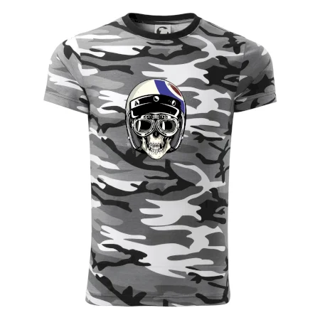 Triko pro motorkáře, na kterém je lebka s helmou, je skvělý dárek pro motorkáře. Motorkářská helma ochrání lebku kostlivce i tu tvou. Každý motorkář bude mít triko s lebkou rád. Moto lebka na tvém triku ukáže, že jsi motorkář až na kost.