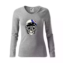 Triko pro motorkáře, na kterém je lebka s helmou, je skvělý dárek pro motorkáře. Motorkářská helma ochrání lebku kostlivce i tu tvou. Každý motorkář bude mít triko s lebkou rád. Moto lebka na tvém triku ukáže, že jsi motorkář až na kost.
