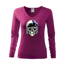 Triko pro motorkáře, na kterém je lebka s helmou, je skvělý dárek pro motorkáře. Motorkářská helma ochrání lebku kostlivce i tu tvou. Každý motorkář bude mít triko s lebkou rád. Moto lebka na tvém triku ukáže, že jsi motorkář až na kost.
