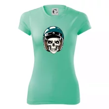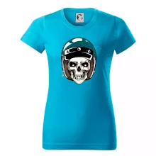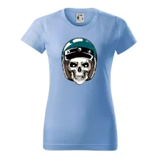 Triko pro motorkáře, na kterém je lebka s helmou, je skvělý dárek pro motorkáře. Modrá motorkářská helma ochrání lebku kostlivce i tu tvou. Každý motorkář bude mít triko s lebkou rád. Moto lebka, hlava kostlivce na tvém triku ukáže, že jsi motorkář až na kost.