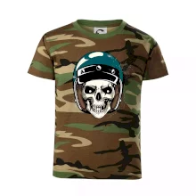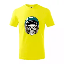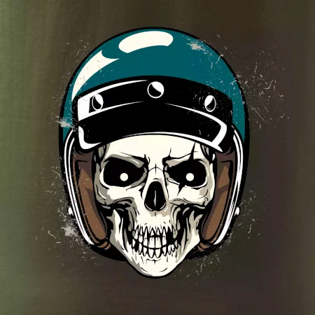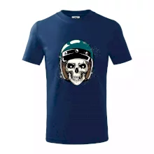 Triko pro motorkáře, na kterém je lebka s helmou, je skvělý dárek pro motorkáře. Modrá motorkářská helma ochrání lebku kostlivce i tu tvou. Každý motorkář bude mít triko s lebkou rád. Moto lebka, hlava kostlivce na tvém triku ukáže, že jsi motorkář až na kost.