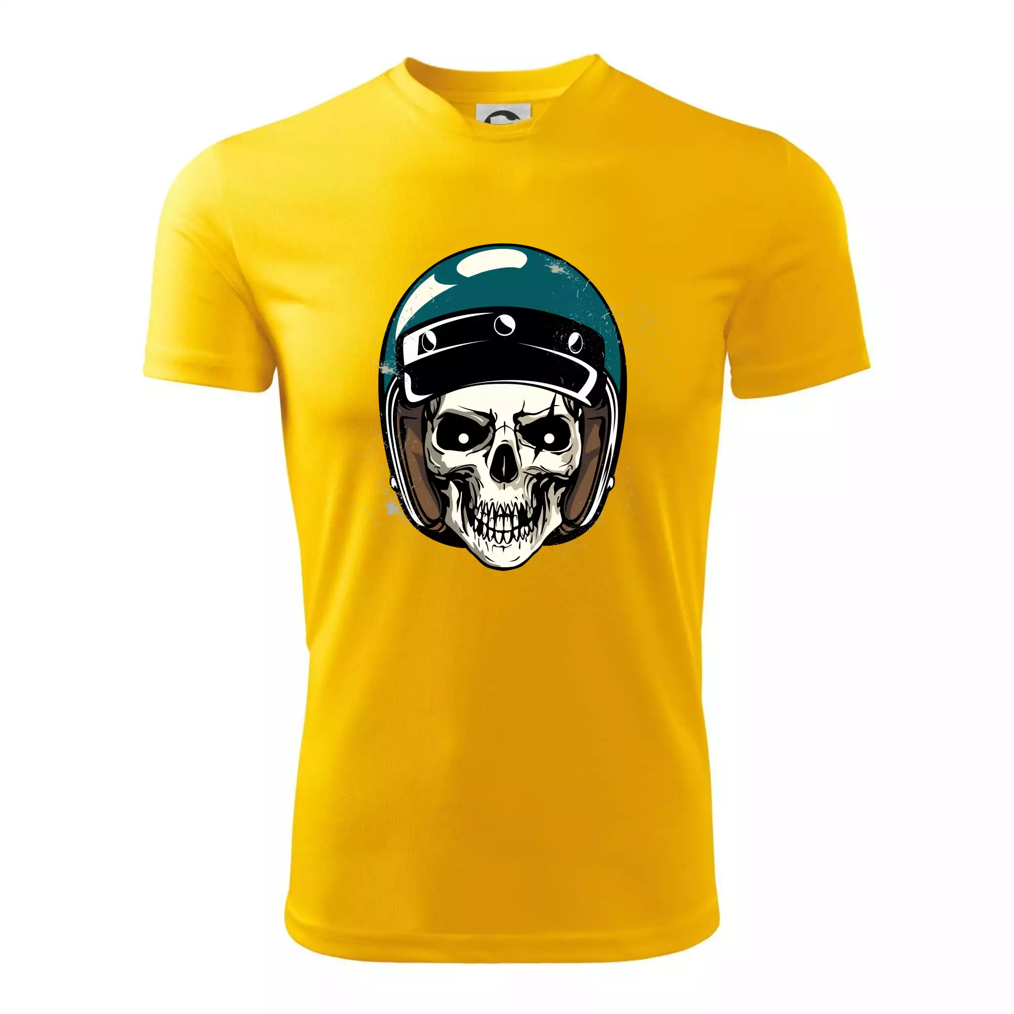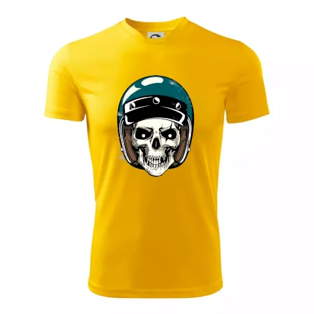 Triko pro motorkáře, na kterém je lebka s helmou, je skvělý dárek pro motorkáře. Modrá motorkářská helma ochrání lebku kostlivce i tu tvou. Každý motorkář bude mít triko s lebkou rád. Moto lebka, hlava kostlivce na tvém triku ukáže, že jsi motorkář až na kost.