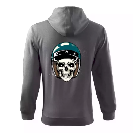 Triko pro motorkáře, na kterém je lebka s helmou, je skvělý dárek pro motorkáře. Modrá motorkářská helma ochrání lebku kostlivce i tu tvou. Každý motorkář bude mít triko s lebkou rád. Moto lebka, hlava kostlivce na tvém triku ukáže, že jsi motorkář až na kost.