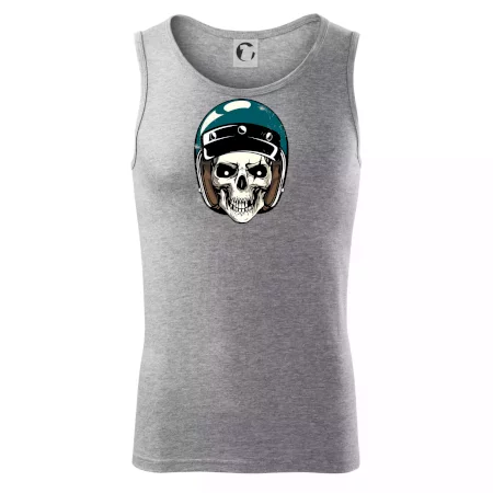 Triko pro motorkáře, na kterém je lebka s helmou, je skvělý dárek pro motorkáře. Modrá motorkářská helma ochrání lebku kostlivce i tu tvou. Každý motorkář bude mít triko s lebkou rád. Moto lebka, hlava kostlivce na tvém triku ukáže, že jsi motorkář až na kost.