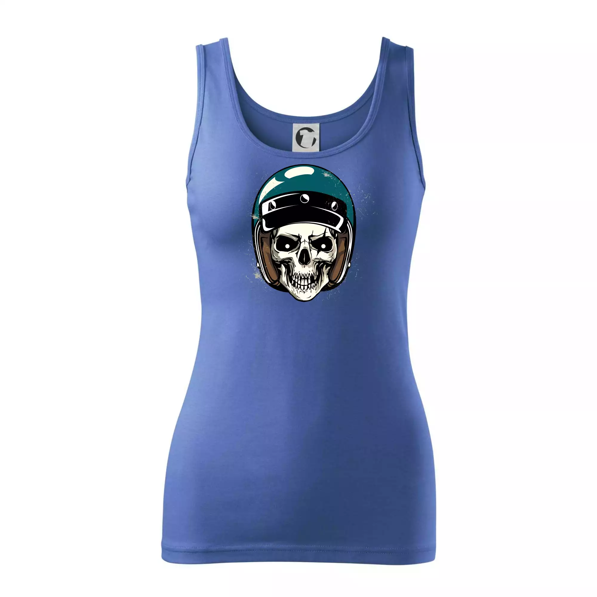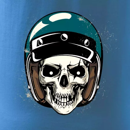 Triko pro motorkáře, na kterém je lebka s helmou, je skvělý dárek pro motorkáře. Modrá motorkářská helma ochrání lebku kostlivce i tu tvou. Každý motorkář bude mít triko s lebkou rád. Moto lebka, hlava kostlivce na tvém triku ukáže, že jsi motorkář až na kost.