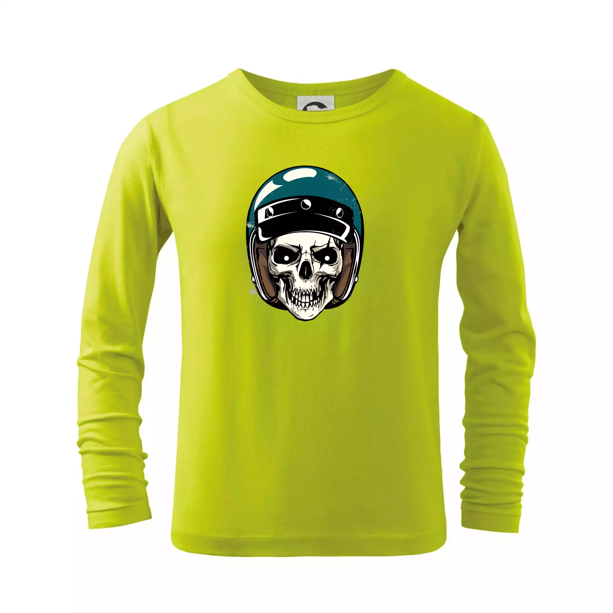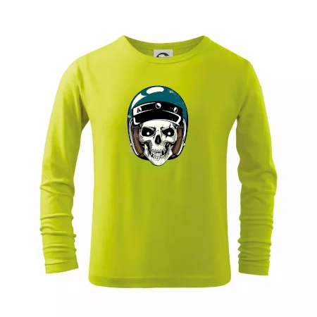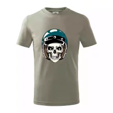 Triko pro motorkáře, na kterém je lebka s helmou, je skvělý dárek pro motorkáře. Modrá motorkářská helma ochrání lebku kostlivce i tu tvou. Každý motorkář bude mít triko s lebkou rád. Moto lebka, hlava kostlivce na tvém triku ukáže, že jsi motorkář až na kost.