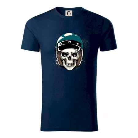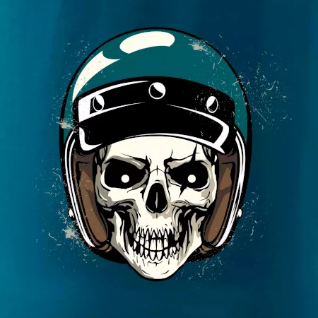 Triko pro motorkáře, na kterém je lebka s helmou, je skvělý dárek pro motorkáře. Modrá motorkářská helma ochrání lebku kostlivce i tu tvou. Každý motorkář bude mít triko s lebkou rád. Moto lebka, hlava kostlivce na tvém triku ukáže, že jsi motorkář až na kost.
