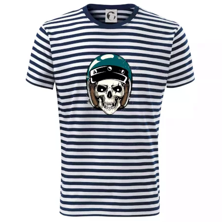 Triko pro motorkáře, na kterém je lebka s helmou, je skvělý dárek pro motorkáře. Modrá motorkářská helma ochrání lebku kostlivce i tu tvou. Každý motorkář bude mít triko s lebkou rád. Moto lebka, hlava kostlivce na tvém triku ukáže, že jsi motorkář až na kost.