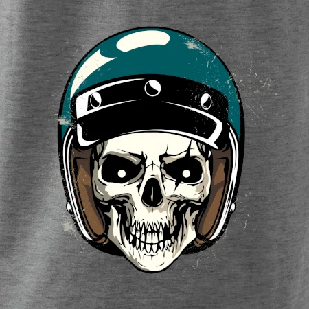 Triko pro motorkáře, na kterém je lebka s helmou, je skvělý dárek pro motorkáře. Modrá motorkářská helma ochrání lebku kostlivce i tu tvou. Každý motorkář bude mít triko s lebkou rád. Moto lebka, hlava kostlivce na tvém triku ukáže, že jsi motorkář až na kost.