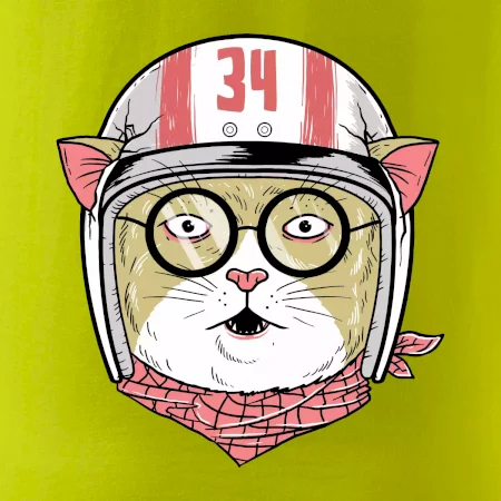 Triko pro motorkáře, na kterém je kočka s helmou, je skvělý dárek pro motorkáře. Motorkářská helma ochrání kočku i tebe. Každý motorkář bude mít triko, na kterém je kocour, rád. Moto triko na kterém je zvíře s helmou je vhodný dárek pro všechny motorkáře.