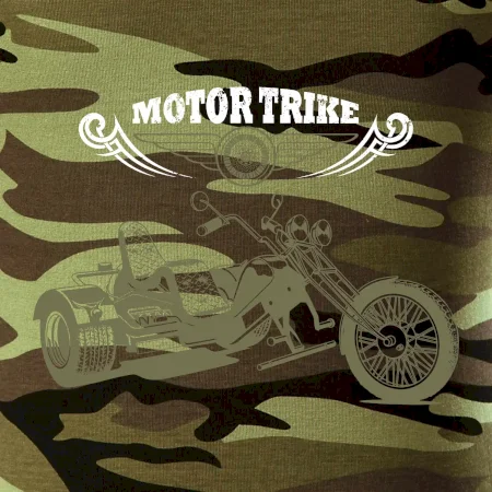 Triko pro motorkáře, na kterém je motorkářská tříkolka motor trike. Moto tříkolka by neměla chybět na triku žádnému motorkáři. Moto triko s tříkolkou by chtěl každý motorkář. Motorkářské triko s tříkolkou je vhodný dárek pro motorkáře.