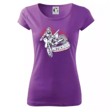 Trendové dámské triko s velmi krátkým rukávem, volnějšího střihu, v dolním kraji všité do širokého lemu. Kulatý průkrčník s úzkým lemem ze shodného materiálu.