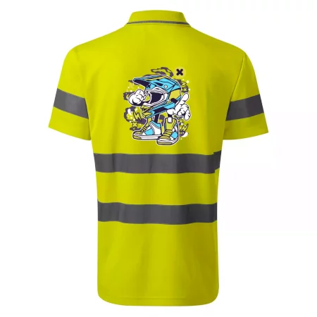 Reflexní polokošile MALFINI HV Runway 2V9 zajišťuje vysokou viditelnost díky fluorescenčnímu polyesteru a certifikovaným retroreflexním pruhům 3M. Pohodlná díky vnitřní bavlněné vrstvě, s bočními švy, žebrovaným límečkem s kontrastním pruhem a légou se třemi knoflíky. Splňuje normy EN ISO 20471 (třída 2) a EN ISO 13688, ideální pro práci i volný čas. Dostupná v reflexní žluté a oranžové, velikosti S-3XL.