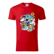 Pánské tričko s krátkým rukávem vyšší gramáže. Módní, přiléhavý střih s bočními švy. Úzký lem průkrčníku ze žebrového úpletu s přídavkem 5 % elastanu. Vnitřní část zadního průkrčníku začištěna páskou. Zpevněný ramenní šev.