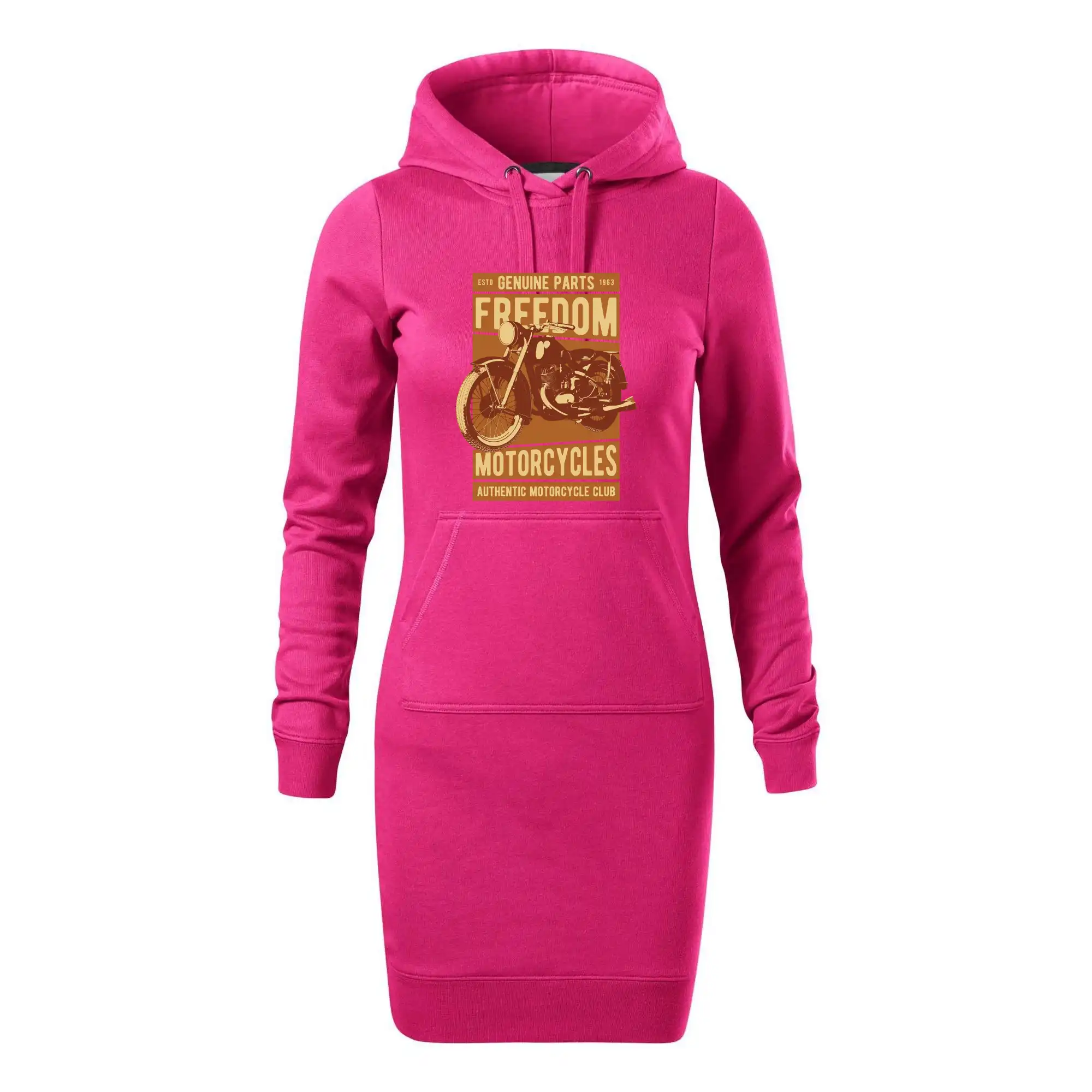 Dámské mikinové šaty MALFINI Snap 419 jsou ideální volbou pro ženy, které hledají pohodlný a stylový kousek pro volný čas nebo každodenní nošení. Lehce vypasovaný střih s bočními švy podtrhuje ženskou siluetu, zatímco kapuce s podšívkou a stahovací šňůrkou dodává ležérní vzhled. Šaty mají délku nad kolena a jsou vybaveny nakládanou kapsou ve stylu „klokanky“. Materiál je měkký a příjemný na dotek díky směsi bavlny a polyesteru s nepočesanou vnitřní stranou.