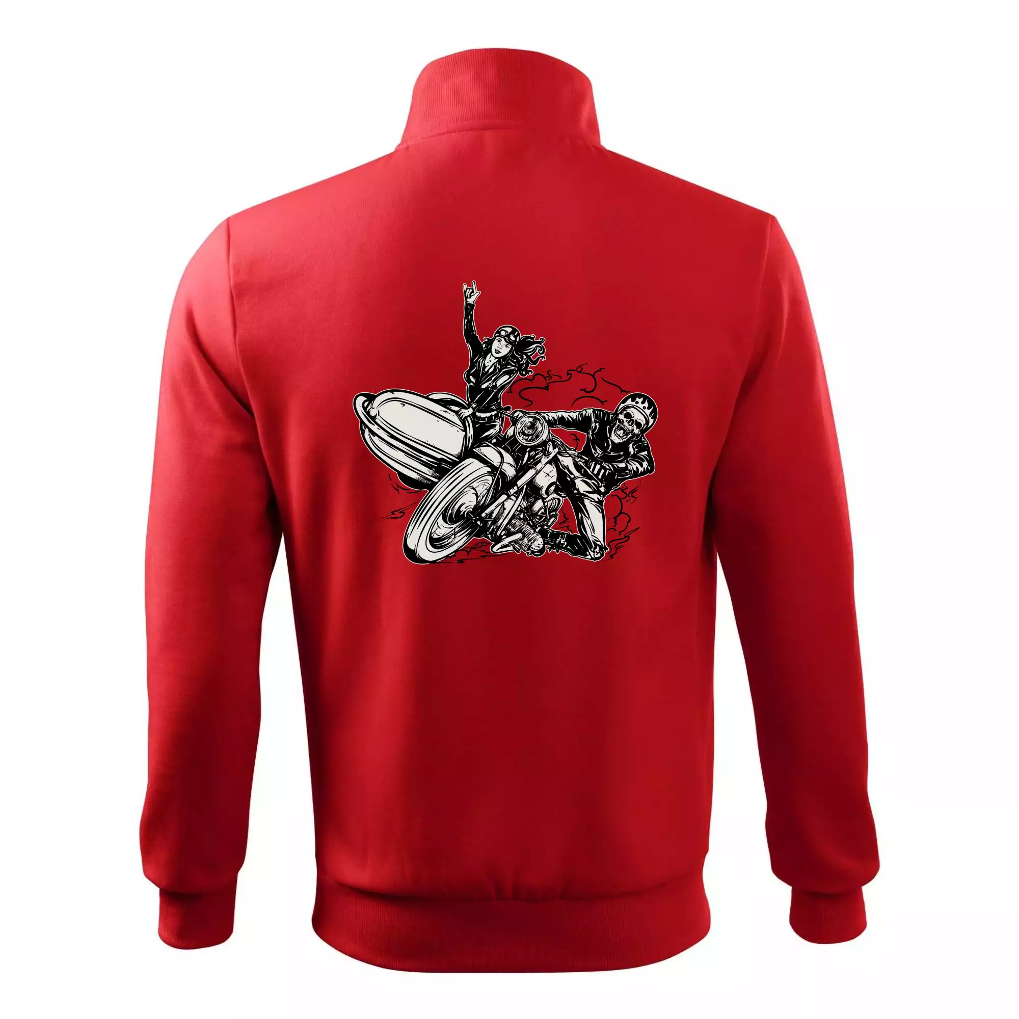 Triko pro motorkáře, na kterém je motorkář kostlivec na motorce. Sajdkára u motorky je skvělá možnost jak se může u tvého pekelného stroje objevit i krásná dívka stopařka. Motorka je životní styl, tak to ukaž tím, že si koupíš triko s motorkou. Pokud jsi pravý motorkář a máš rád rychlost, motorka se sajtkou je motiv ideální pro tebe. Moto triko je vhodný dárek pro každého motorkáře, který ví, co je to sajtkára.