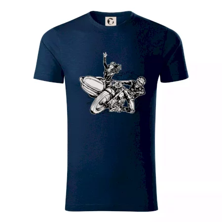 Triko pro motorkáře, na kterém je motorkář kostlivec na motorce. Sajdkára u motorky je skvělá možnost jak se může u tvého pekelného stroje objevit i krásná dívka stopařka. Motorka je životní styl, tak to ukaž tím, že si koupíš triko s motorkou. Pokud jsi pravý motorkář a máš rád rychlost, motorka se sajtkou je motiv ideální pro tebe. Moto triko je vhodný dárek pro každého motorkáře, který ví, co je to sajtkára.