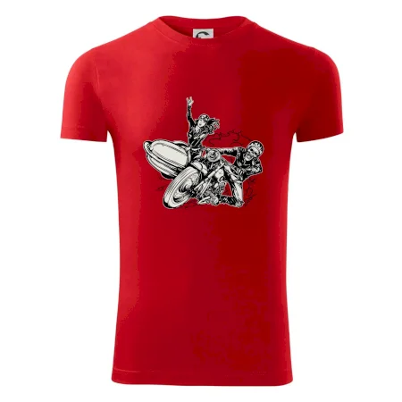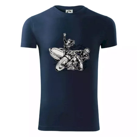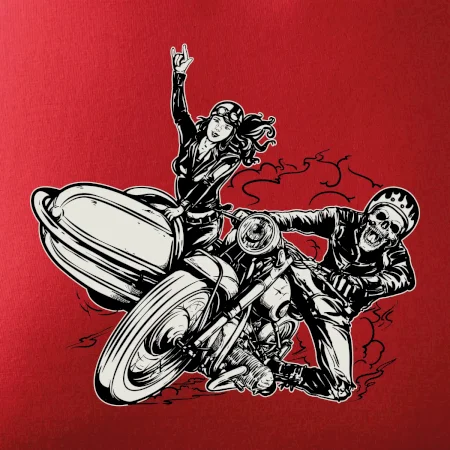 Triko pro motorkáře, na kterém je motorkář kostlivec na motorce. Sajdkára u motorky je skvělá možnost jak se může u tvého pekelného stroje objevit i krásná dívka stopařka. Motorka je životní styl, tak to ukaž tím, že si koupíš triko s motorkou. Pokud jsi pravý motorkář a máš rád rychlost, motorka se sajtkou je motiv ideální pro tebe. Moto triko je vhodný dárek pro každého motorkáře, který ví, co je to sajtkára.