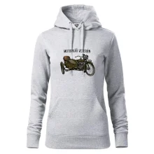 Triko pro motorkáře, na kterém je motorka veterán se sajdkou. Motorkářské triko, kde je historická motorka se sajdkárou, musí mít doma každý vášnivý motorkář. Triko s motorkou se sajtkou je vhodný dárek pro motorkáře. Sajdkára u motorky ti poskytne další místo pro parťáka a nebo pro hromadu našich triček! Sajtka je super věc stejně jako tohle triko!