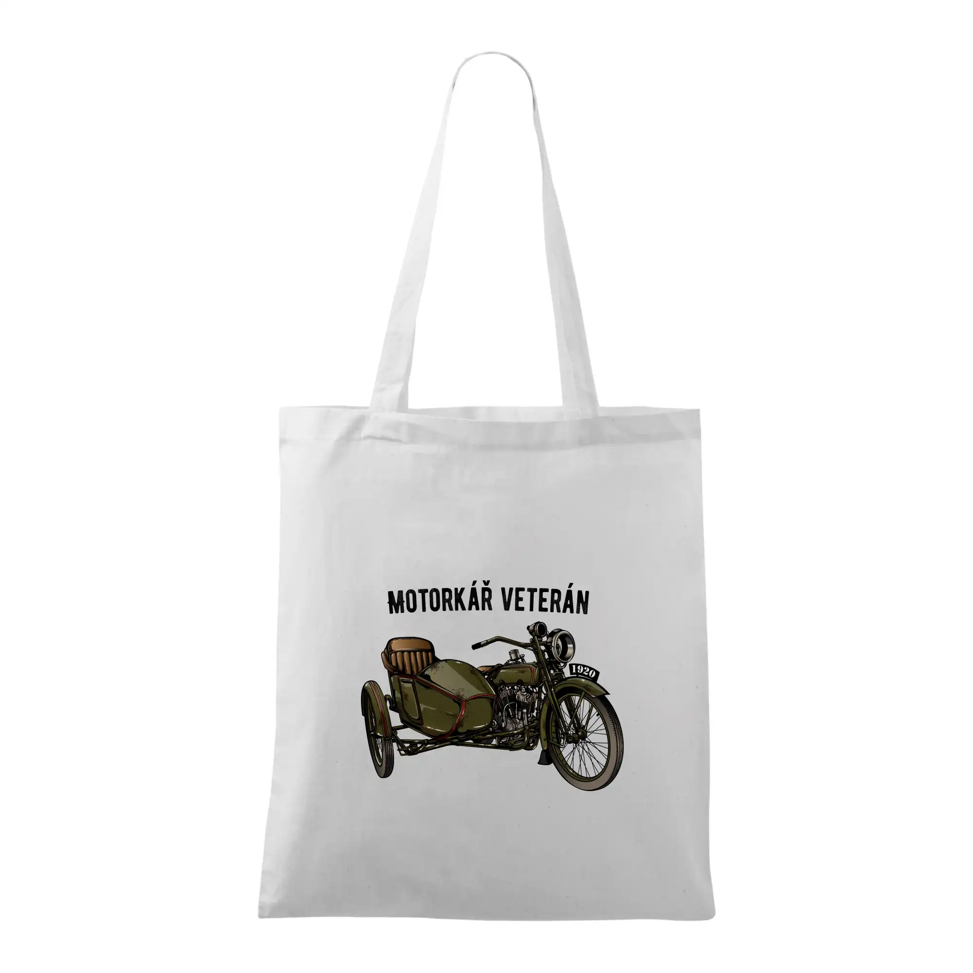 Triko pro motorkáře, na kterém je motorka veterán se sajdkou. Motorkářské triko, kde je historická motorka se sajdkárou, musí mít doma každý vášnivý motorkář. Triko s motorkou se sajtkou je vhodný dárek pro motorkáře. Sajdkára u motorky ti poskytne další místo pro parťáka a nebo pro hromadu našich triček! Sajtka je super věc stejně jako tohle triko!