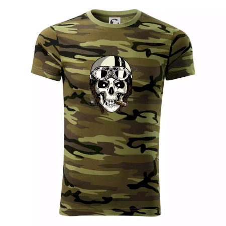 Tričko střední gramáže v barvách camouflage. Střih s bočními švy. Lem průkrčníku ze žebrového úpletu s přídavkem 5 % elastanu. Vnitřní část zadního průkrčníku začištěna páskou v barvě camouflage.