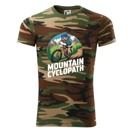 Tričko střední gramáže v barvách camouflage. Střih s bočními švy. Lem průkrčníku ze žebrového úpletu s přídavkem 5 % elastanu. Vnitřní část zadního průkrčníku začištěna páskou v barvě camouflage.