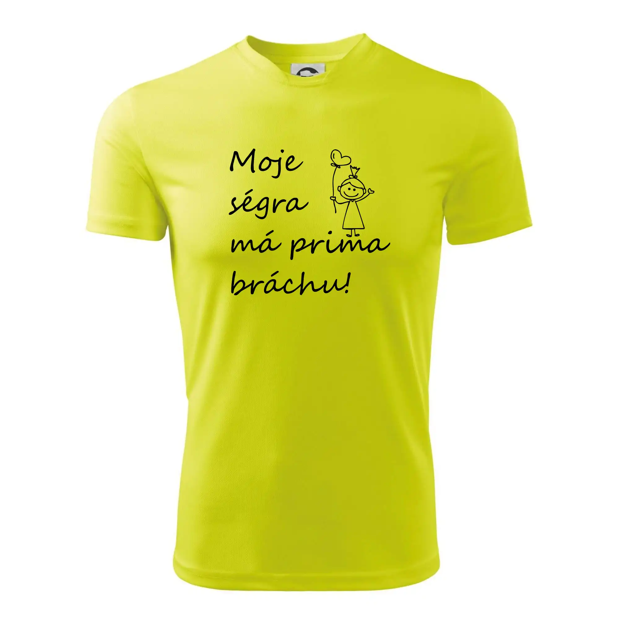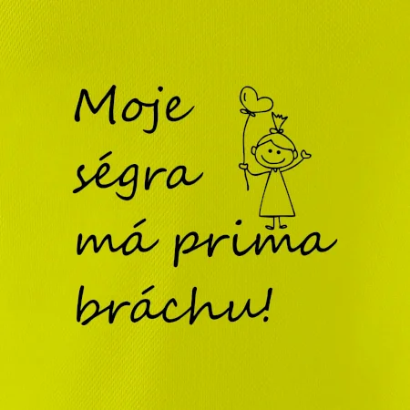 Triko pro bráchu s nápisem "Moje ségra má prima bráchu". Ukaž, že jsi taky fajn brácha. Vtipné sourozenecké triko pro bratra.