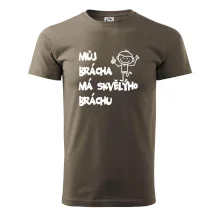 Triko pro bratra s nápisem "Můj brácha má skvělýho bráchu". Ukaž, že jsi taky fajn sourozenec. Vtipné rodinné triko pro sourozence.