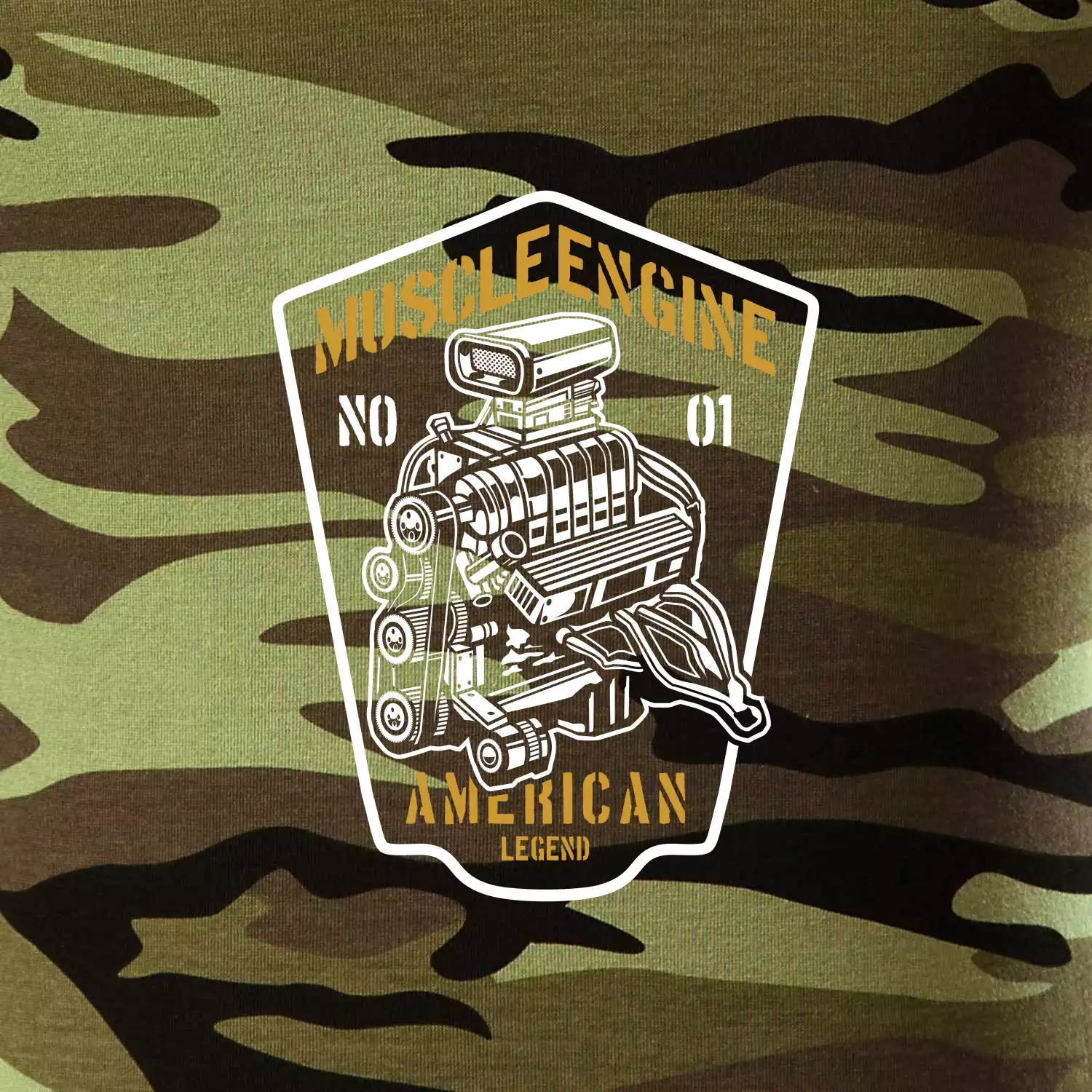 Tričko střední gramáže v barvách camouflage. Střih s bočními švy. Lem průkrčníku ze žebrového úpletu s přídavkem 5 % elastanu. Vnitřní část zadního průkrčníku začištěna páskou v barvě camouflage.