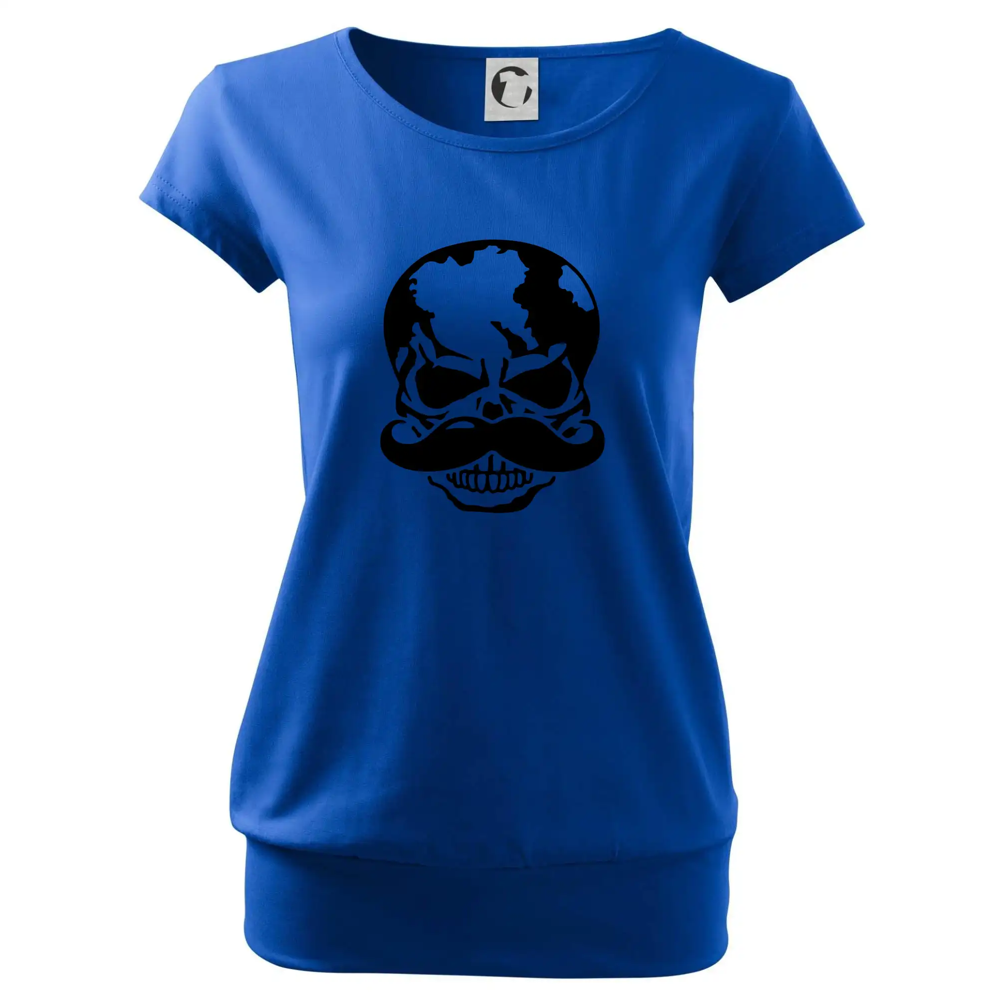 Trendové dámské triko s velmi krátkým rukávem, volnějšího střihu, v dolním kraji všité do širokého lemu. Kulatý průkrčník s úzkým lemem ze shodného materiálu.