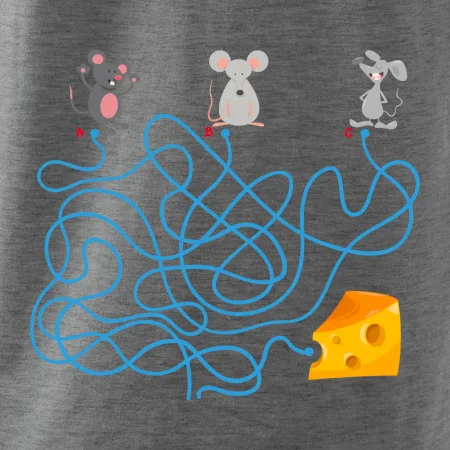 Triko myší hlavolam je pro tebe to pravé, pokud jsi milovník hlavolamů a hádanek nebo pokud máš rád myši. Tři myši, jeden sýr, jedno bludiště, která myška najde cestu bludištěm jako první? Já si myslím, že vyhraje bílá myš. Triko je vhodný dárek pro dítě.