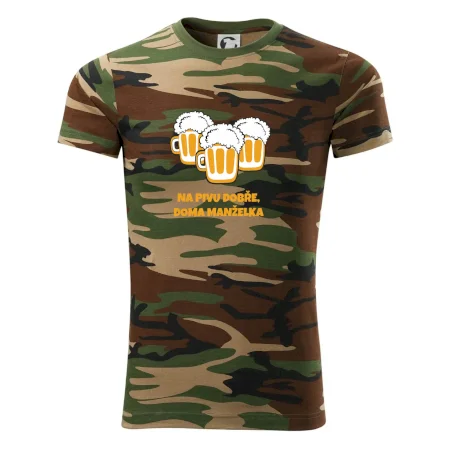 Máš rád pivo? Triko pro pivaře, na kterém je nápis "Na pivu dobře, doma manželka". Pivní triko, na kterém je pivní půllitr ocení každý pivař. Triko je vhodný dárek pro pivaře.