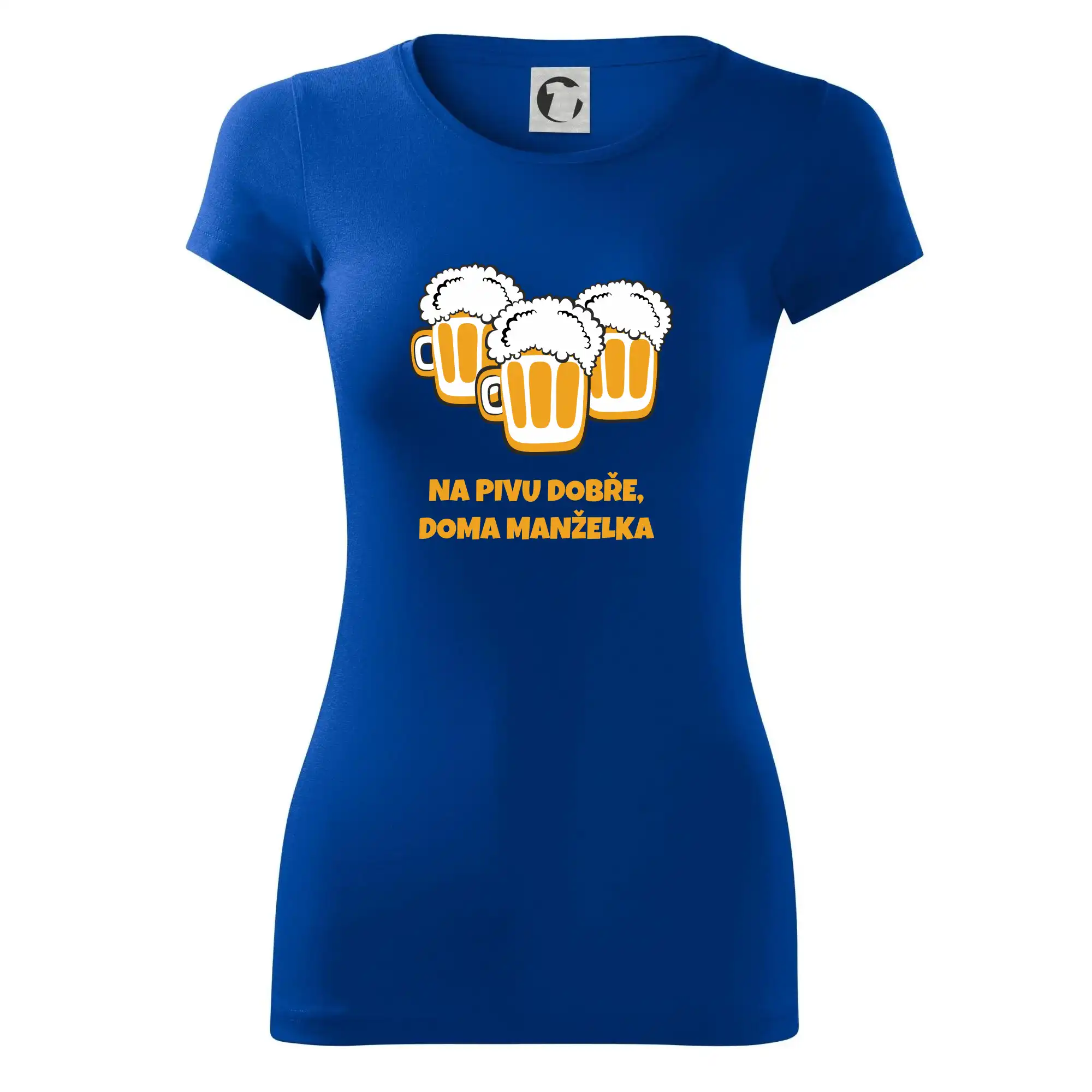 Máš rád pivo? Triko pro pivaře, na kterém je nápis "Na pivu dobře, doma manželka". Pivní triko, na kterém je pivní půllitr ocení každý pivař. Triko je vhodný dárek pro pivaře.