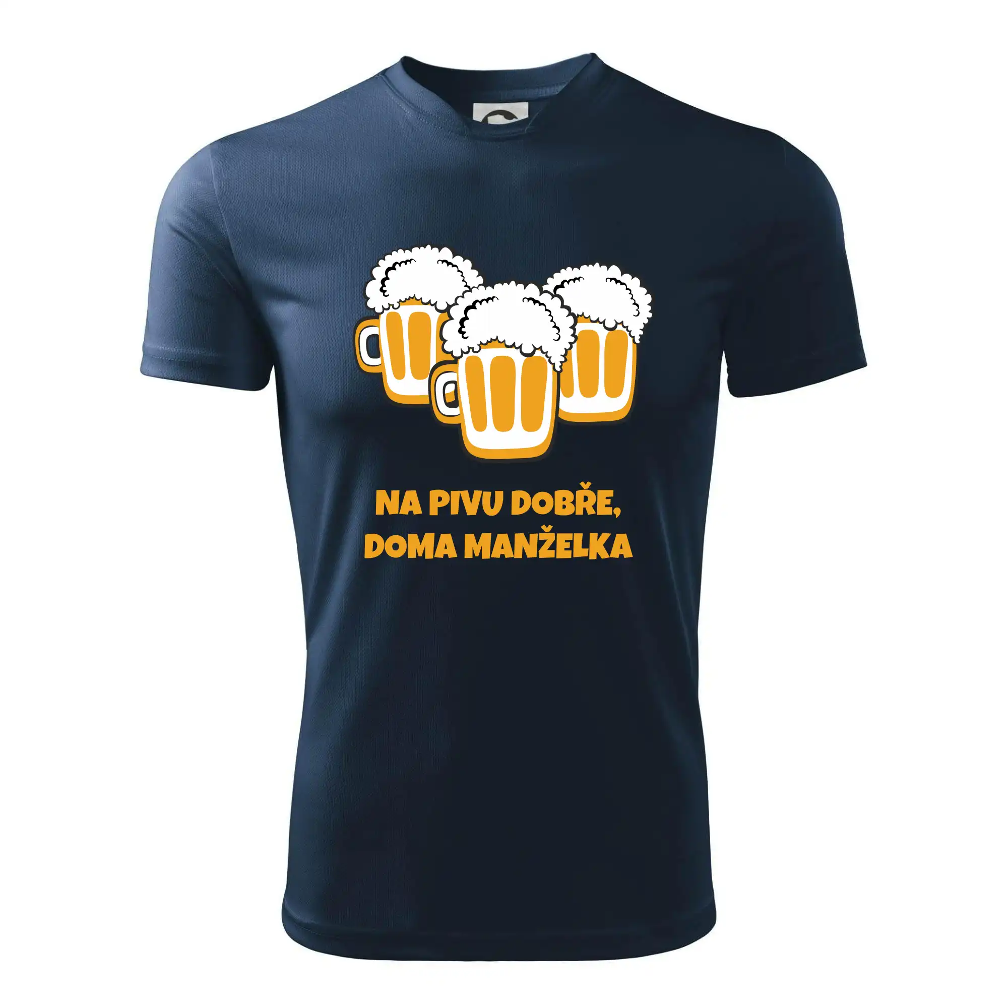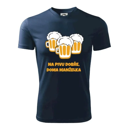 Máš rád pivo? Triko pro pivaře, na kterém je nápis "Na pivu dobře, doma manželka". Pivní triko, na kterém je pivní půllitr ocení každý pivař. Triko je vhodný dárek pro pivaře.