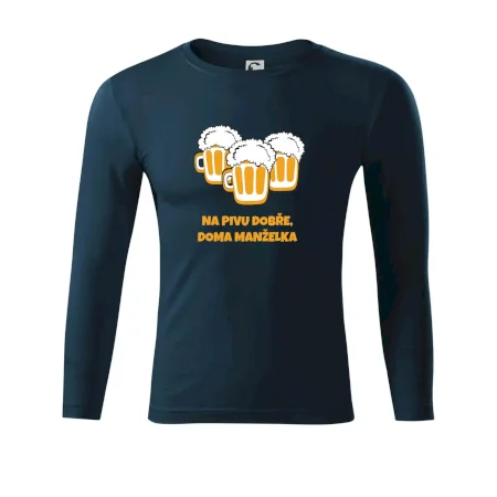 Máš rád pivo? Triko pro pivaře, na kterém je nápis "Na pivu dobře, doma manželka". Pivní triko, na kterém je pivní půllitr ocení každý pivař. Triko je vhodný dárek pro pivaře.