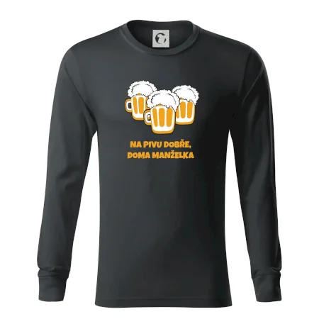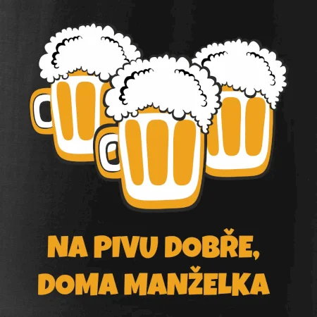 Máš rád pivo? Triko pro pivaře, na kterém je nápis "Na pivu dobře, doma manželka". Pivní triko, na kterém je pivní půllitr ocení každý pivař. Triko je vhodný dárek pro pivaře.