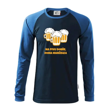 Máš rád pivo? Triko pro pivaře, na kterém je nápis "Na pivu dobře, doma manželka". Pivní triko, na kterém je pivní půllitr ocení každý pivař. Triko je vhodný dárek pro pivaře.