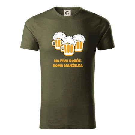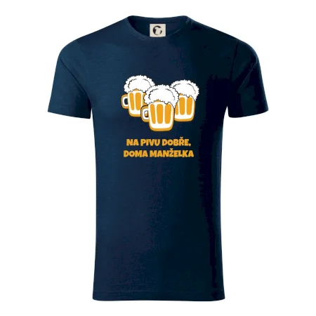 Máš rád pivo? Triko pro pivaře, na kterém je nápis "Na pivu dobře, doma manželka". Pivní triko, na kterém je pivní půllitr ocení každý pivař. Triko je vhodný dárek pro pivaře.