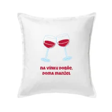 Triko pro vinaře s nápisem "Na vínku dobře, doma manžel." Vinařské triko, na kterém jsou dvě skleničky s červeným vínem. Triko je vhodný dárek pro vinaře, ideálně pokud má rád červené víno.