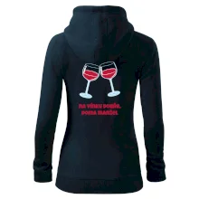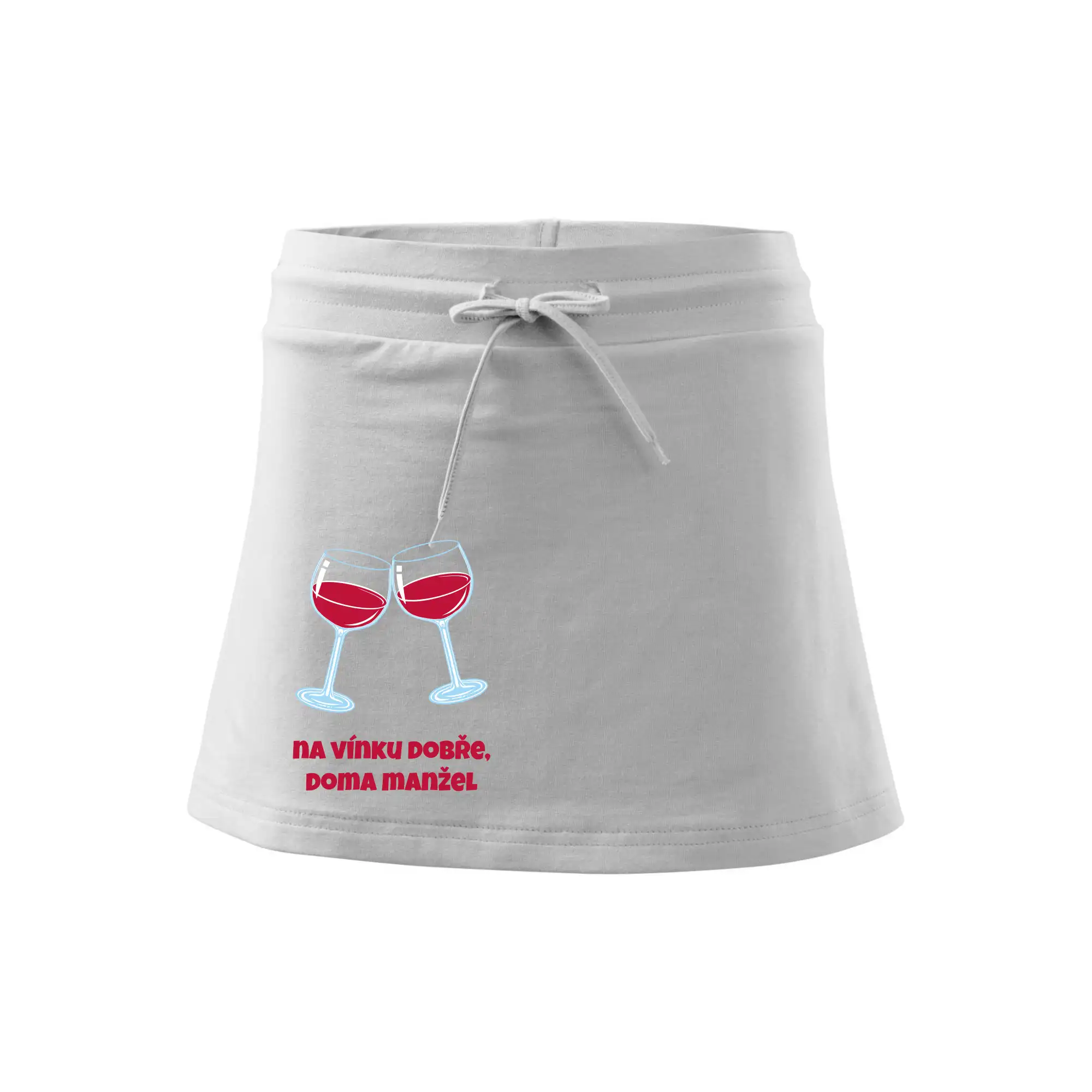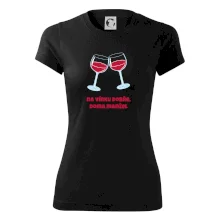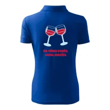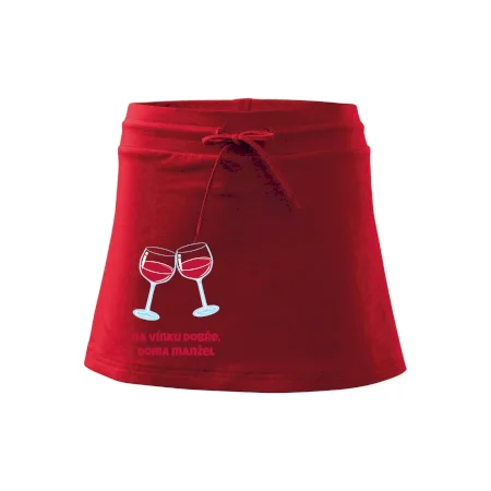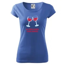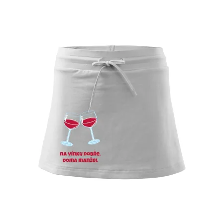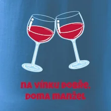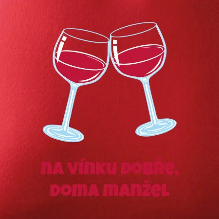 Triko pro vinaře s nápisem "Na vínku dobře, doma manžel." Vinařské triko, na kterém jsou dvě skleničky s červeným vínem. Triko je vhodný dárek pro vinaře, ideálně pokud má rád červené víno.