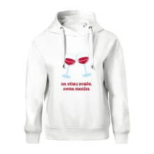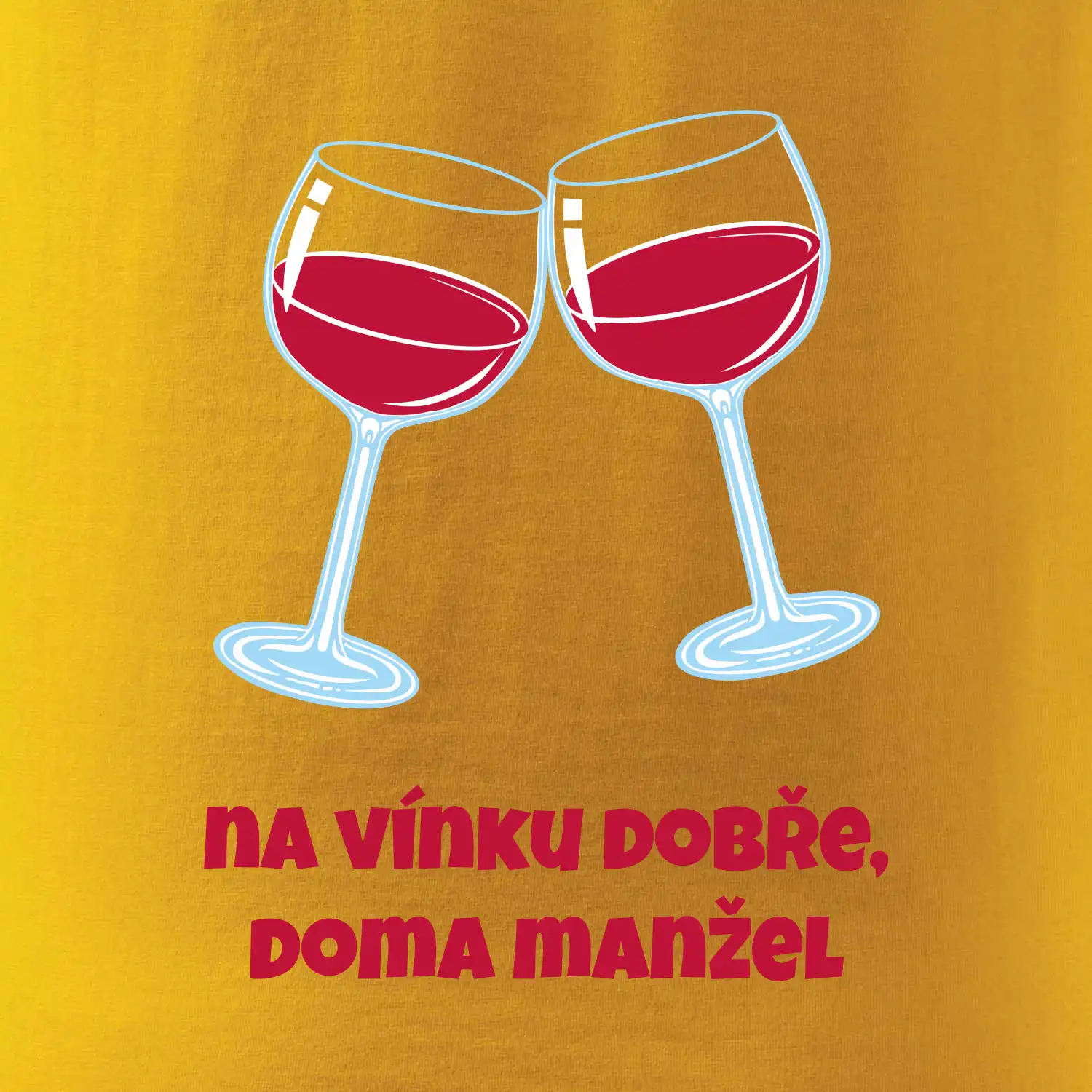 Triko pro vinaře s nápisem "Na vínku dobře, doma manžel." Vinařské triko, na kterém jsou dvě skleničky s červeným vínem. Triko je vhodný dárek pro vinaře, ideálně pokud má rád červené víno.