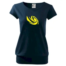 Trendové dámské triko s velmi krátkým rukávem, volnějšího střihu, v dolním kraji všité do širokého lemu. Kulatý průkrčník s úzkým lemem ze shodného materiálu.