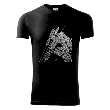 Pánské tričko s krátkým rukávem vyšší gramáže. Módní, přiléhavý střih s bočními švy. Úzký lem průkrčníku ze žebrového úpletu s přídavkem 5 % elastanu. Vnitřní část zadního průkrčníku začištěna páskou. Zpevněný ramenní šev.