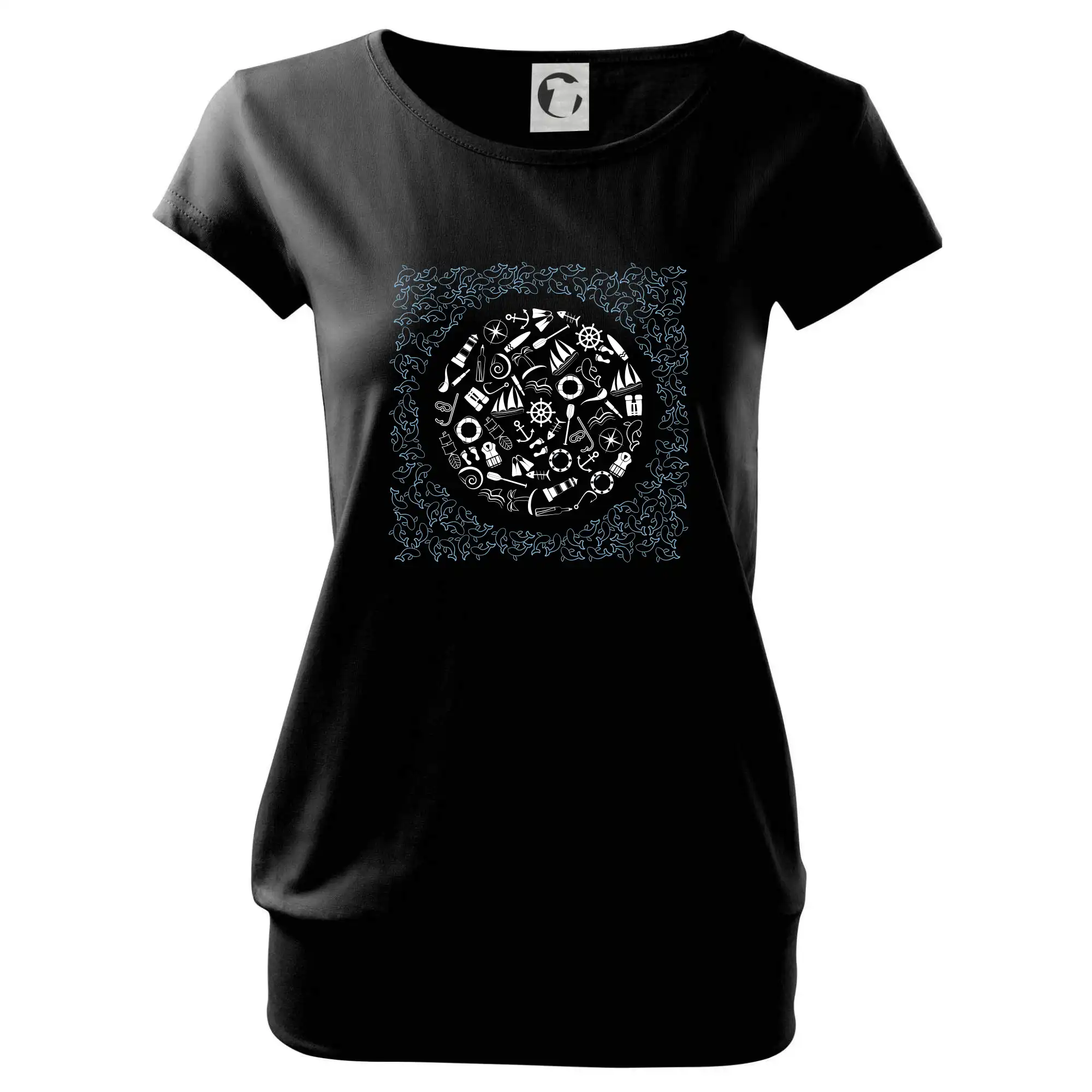 Trendové dámské triko s velmi krátkým rukávem, volnějšího střihu, v dolním kraji všité do širokého lemu. Kulatý průkrčník s úzkým lemem ze shodného materiálu.