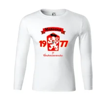 V březnu 69 naši hokejisté porazili dvakrát během týdne Sovětský svaz. Lidé v Československu to vzali jako pomstu za okupaci v srpnu 68. Na zápas někteří hokejisté nastoupili s přeškrtnutou hvězdou na dresu a přesně tento znak na triku si můžete zakoupit.