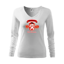 V březnu 69 naši hokejisté porazili dvakrát během týdne Sovětský svaz. Lidé v Československu to vzali jako pomstu za okupaci v srpnu 68. Na zápas někteří hokejisté nastoupili s přeškrtnutou hvězdou na dresu a přesně tento znak na triku si můžete zakoupit.