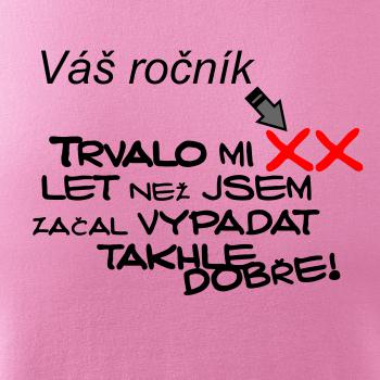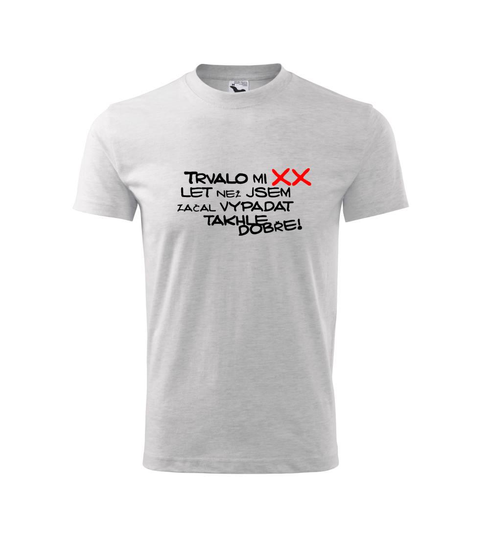 Vtipné narozeninové tričko s nápisem "Trvalo mi XX let než jsem začal vypadat takhle dobře!" Tričko potěší oslavence v každém věku. Svůj věk nezapomeň připsat do poznámky!
