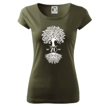 Narozeninové triko pro oslavence, který slaví jubileum 70 let. Triko se stromem. Dárek k sedmdesátinám. Triko k sedmdesátým narozeninám.