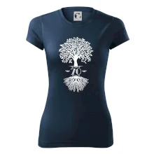 Narozeninové triko pro oslavence, který slaví jubileum 70 let. Triko se stromem. Dárek k sedmdesátinám. Triko k sedmdesátým narozeninám.